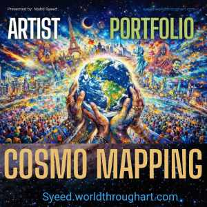 Cosmo Mapping Series Part I proposes a cosmopolitan cartographic praxis: one home, one family, one citizenship transcending artificial nation-state boundaries. Through drawings originating in Kashmir’s fractured geographies, this work aesthetically interrogates: Political Fragmentation Governmental terrorisms and socio-political injustices manifesting as spatial ruptures—visualized through violence aesthetics that expose systemic violence upon the human continuum. Utopian Reconfiguration Fragmented morphologies yielding infinite grids of possibility, where diversity coheres in unity beyond geopolitical confinement. Global Kinship Deleuze-Guattari inspired philosophy meets J&K empirical cartography, summoning collective transcendence toward universal community. This 59-page portfolio—executed in drawing and painting—serves as manifesto, scholarly inquiry, and call to global awakening.